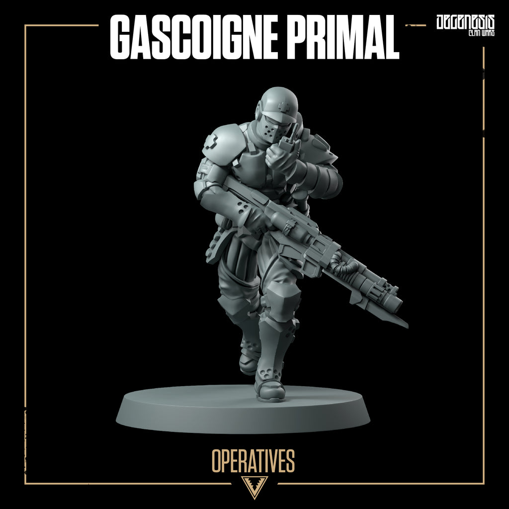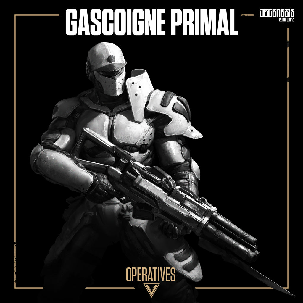 An alternate pose for Gascoigne, which didn't make it into the Clan Wars crowdfunding campaign. The Primal pose series aimed to depict a more aggressive, action-shot pose for each of the main Corebox Operatives.